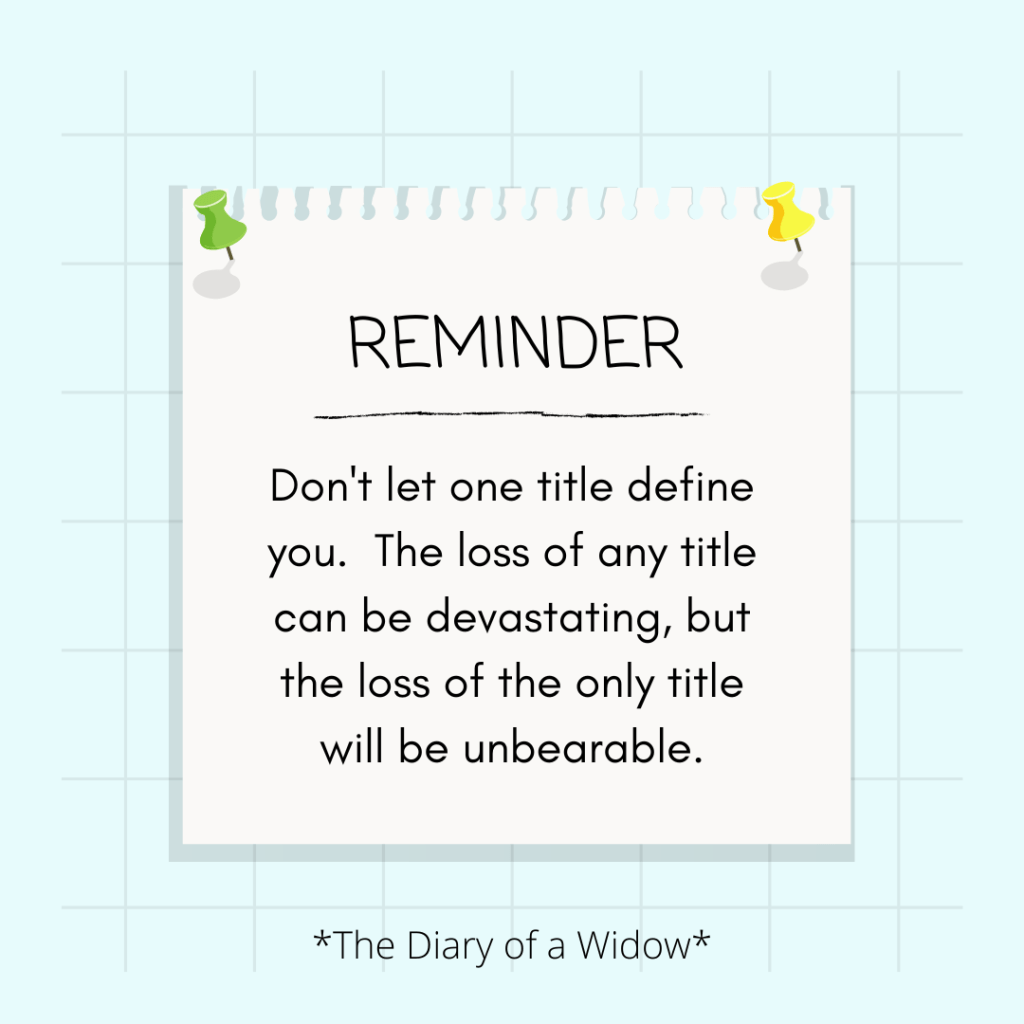 Reminder: Don’t let one title define you. The loss of any title can be devastating, but the loss of the only title would be unbearable.