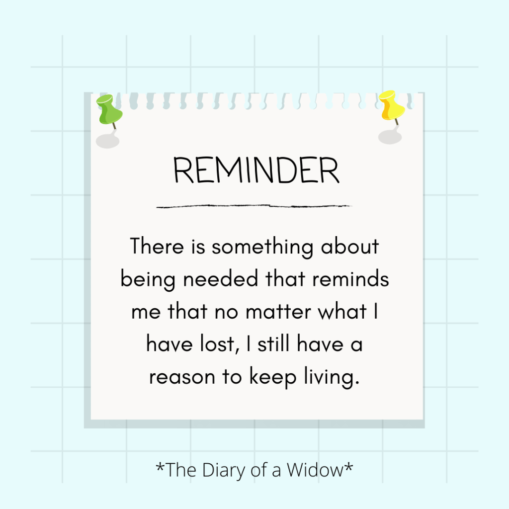 Some days I envy my friends who have lost husbands who are able to stay in bed and cry all day. I envy that they are able to embrace the sadness and loss and just grieve without anyone else needing them. It does not seem fair that I have to get up out of bed every single day and feed them repeatedly!